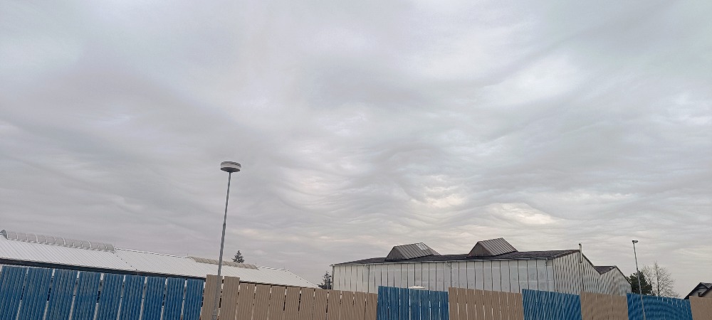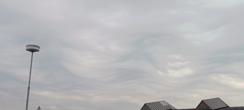 Pohled na oblohu cestou autem cca v 19 h - zaujala mne tato neobvyklá oblačnost - foceno mobilem, zmenšeno