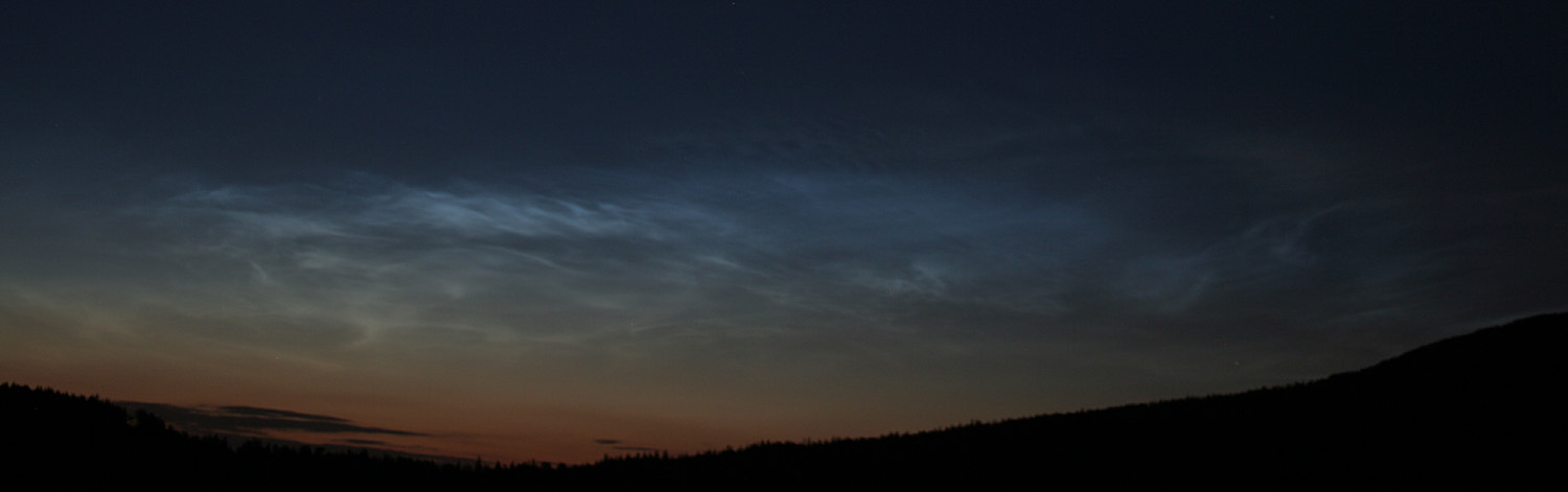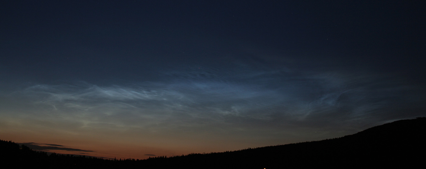 Výrazné noční svítící oblaky zachycené pozdě večer v Nýdku, další pozorování zde.