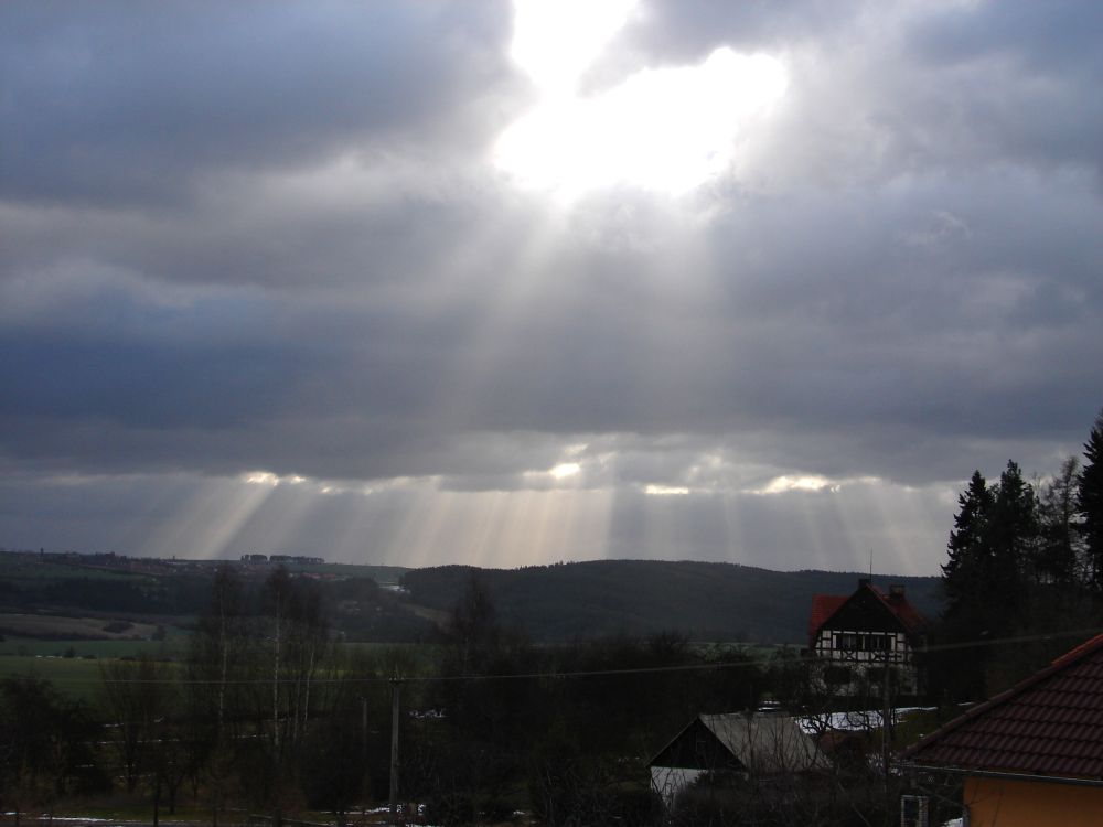 Po celé sobotní dopoledne se objevovaly nádherné krepuskulární paprsky. Jedna malá ochutnávka je zde.
