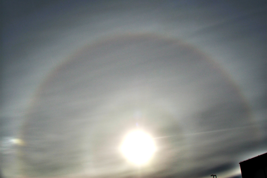 Malé halo a 9° halo, které bylo odhaleno až na fotografiích (zvýrazněno).