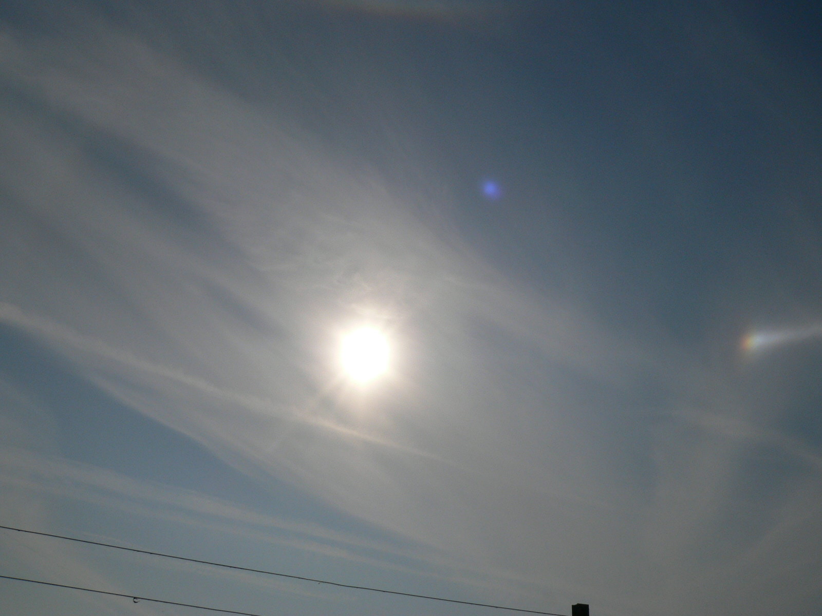 Dotykový oblouk a Parryho oblouk, parhelium s parhelickým obloukem (foto 2). Pořízeno v 15:45 digit.aparátem Panasonic FZ 20.