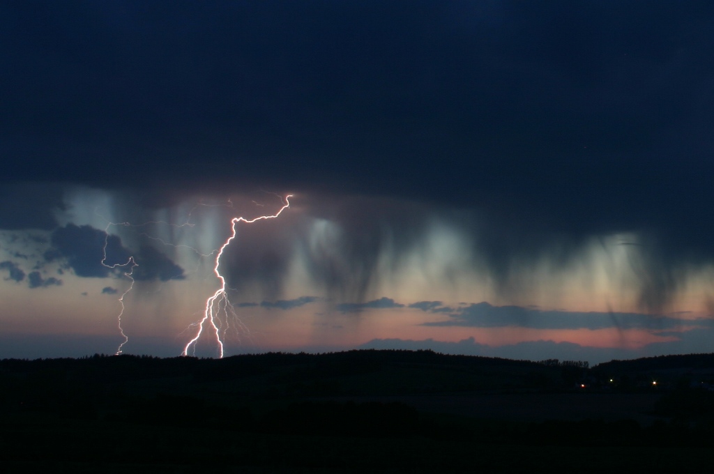 Blesk vyfocený ve 21:18 z vesnice asi 10 km od Písku. Vzdálenost blesku podle zvuku 18km. Fotoaparát: Canon EOS 300D; Ohnisko: ekvivalent 29 mm.