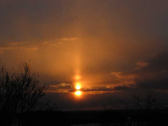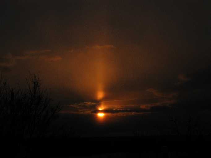 Halový sloup při západu Slunce, fotografováno 2x v 15:30 a v 15:43 hodin (Canon PowerShot A85).