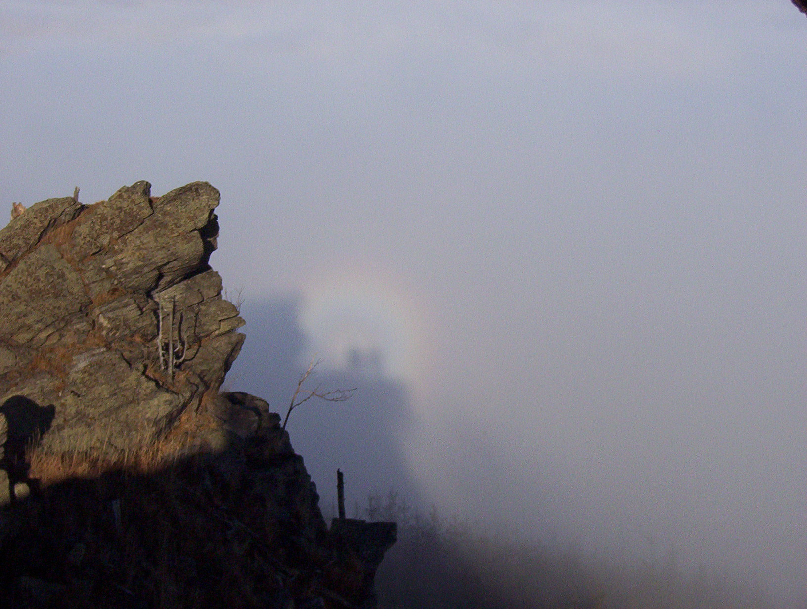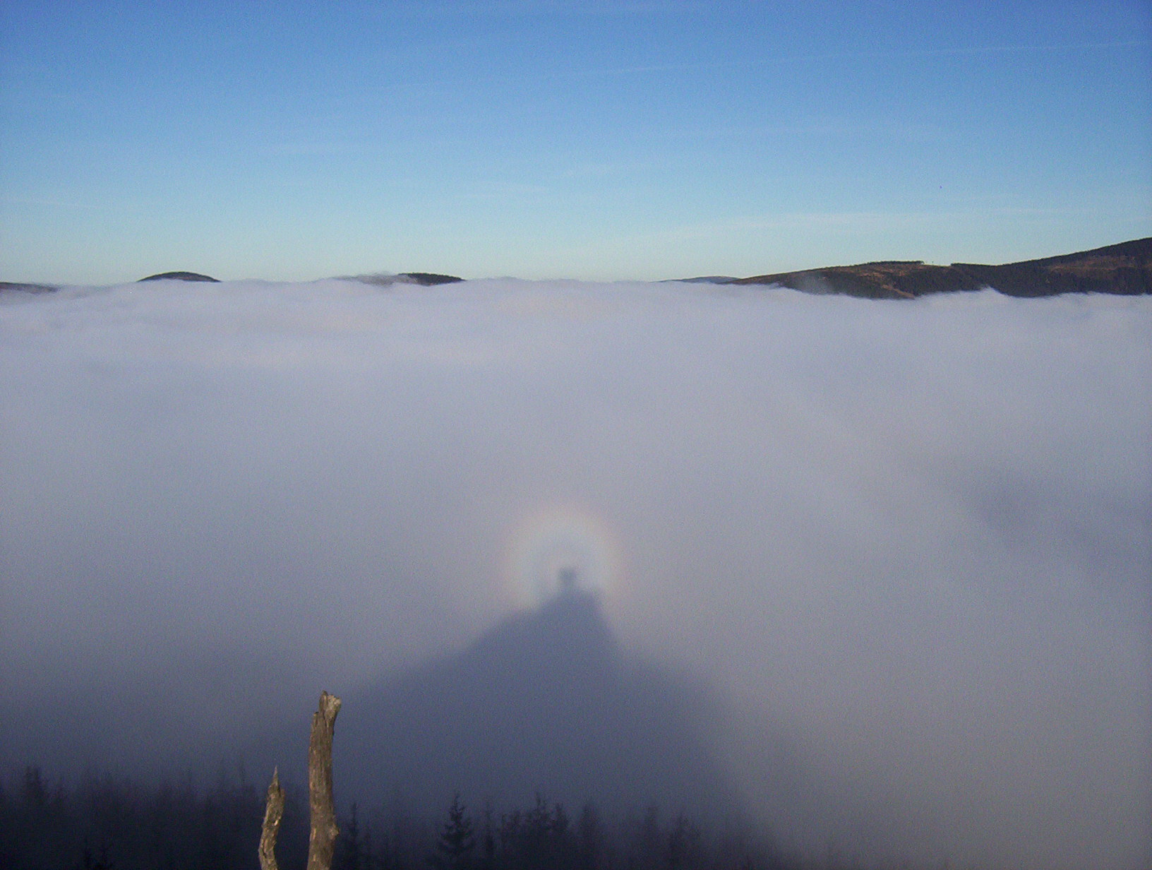 Přitom jsem pozorovali vlastní stín, který se odrážel na níže ležící oblačnosti ověnčený gloriolou. Snímky byly pořízeny z digitálního fotáku ve 14 hodin odpoledne dne 13.11. 2005 .